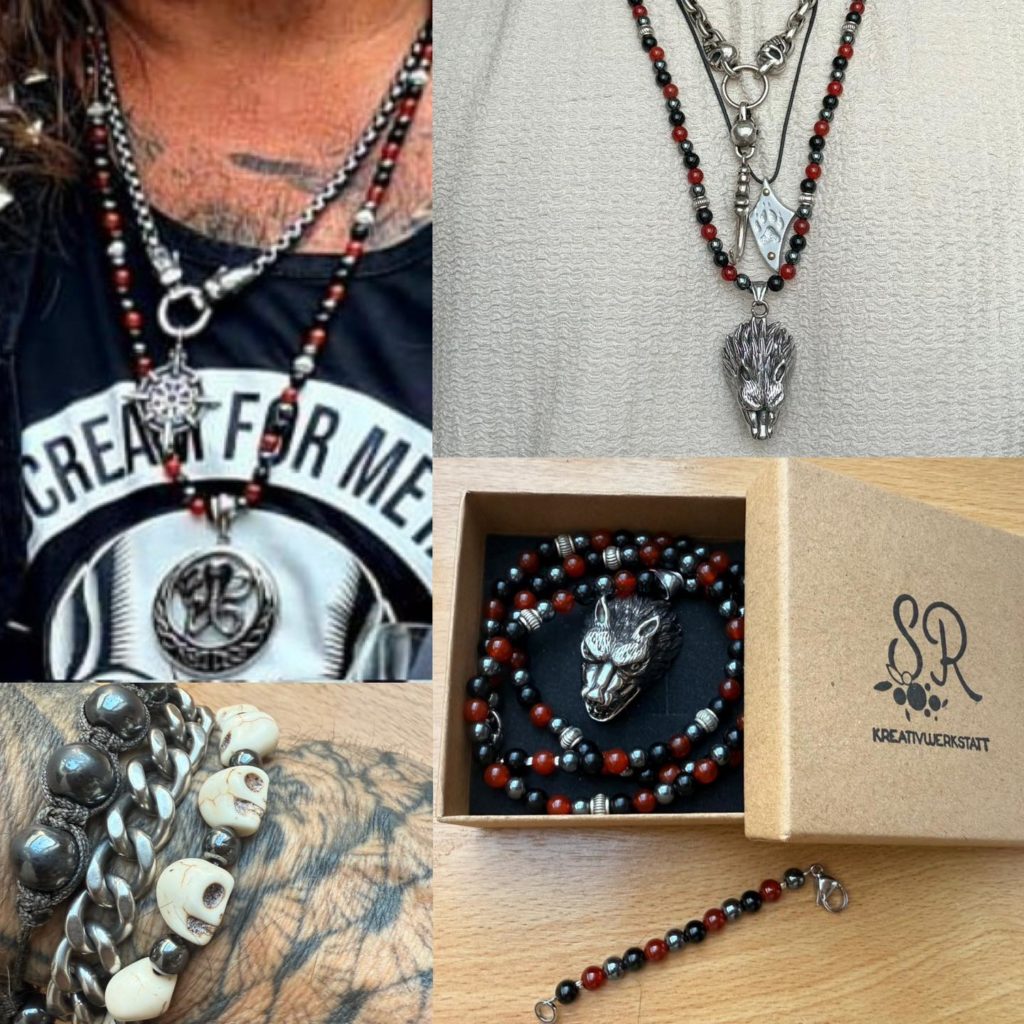 Unsere handgefertigten Schmuckstücke entstehen für Menschen mit Charakter und Stil – ob Frauen oder Männer, Kinder, Musiker, Rock- oder Metal-Fans. Jeder bekommt bei uns ein Stück, das perfekt zu seiner Persönlichkeit passt.